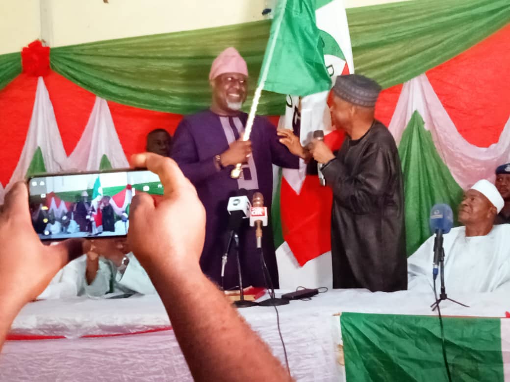 The People’s Democratic Party (PDP) on Wednesday in Lokoja formally presented its Flag to Kogi governorship candidate, Senator Dino Melaye.