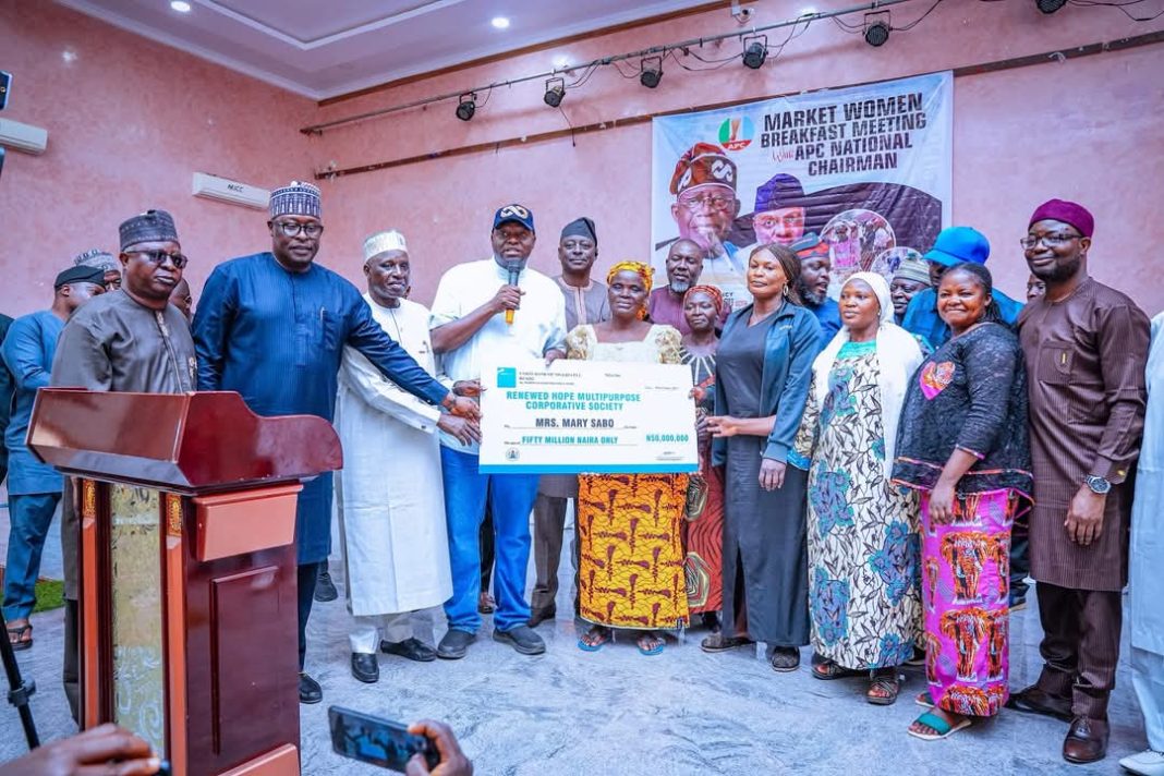 A representative of the market women, who identified herself as Mama Mary, received the ₦50 million cheque on behalf of the traders. She thanked the APC National Chairman for the empowerment initiative and pledged that the traders would utilize the funds judiciously to improve their businesses and livelihoods.