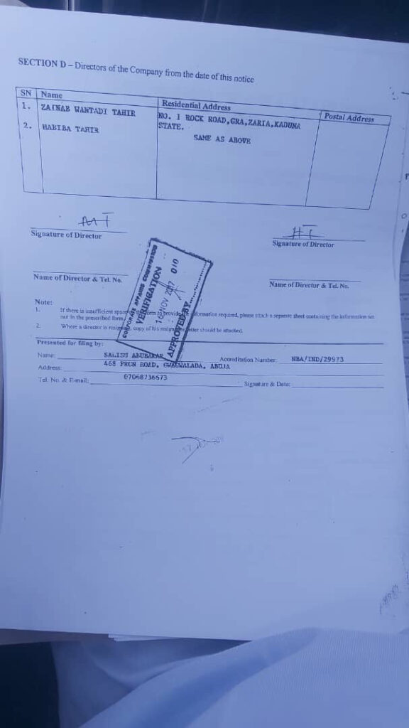 Daybreak News investigation at the Corporate Affairs Commission revealed that Bitmas Bakery Limited is wholly owned by Zainab Wantadi Tahir incorporated in 2014.