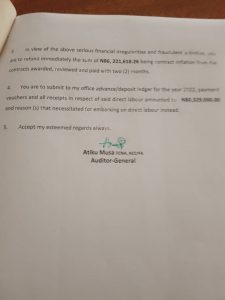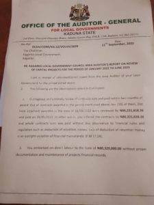 The letter was signed by the Kaduna State Local Government Auditor General, Atiku Musa.