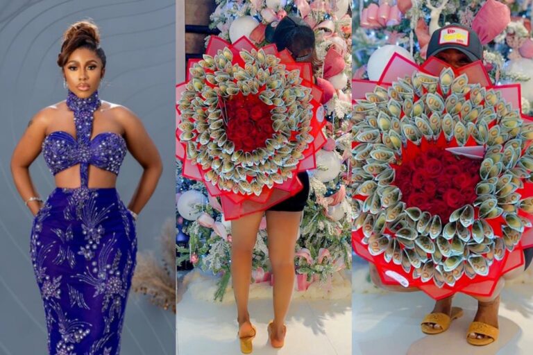 Reality TV star Mercy Eke, known for her extravagant lifestyle, faced criticism from netizens as she flaunted a dollar bouquet allegedly from her mystery man. Sharing photos on Twitter, Mercy expressed gratitude to her “man.” However, some users questioned the authenticity of her claims, citing previous controversies and Pere’s denial of gifting her money. Critics accused her of seeking validation and living a fake life. Despite the skepticism, Mercy recently shared pregnancy-like symptoms, prompting congratulatory messages from fans.