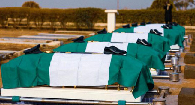 The burial ceremony of seven Airforce Officers who lost their lives on Sunday has commenced at the National Military Cemetery in Abuja.