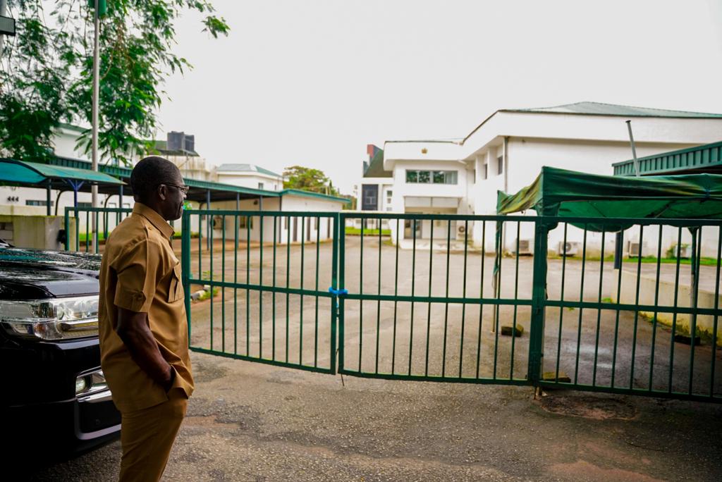 An aide to the deputy governor who made the pictures available to our reporter but begged not to be mentioned disclosed that Shaibu had some discussions with the state commissioner of police and the Director of State Security Services, DSS alerting them of how he was locked out from his office.