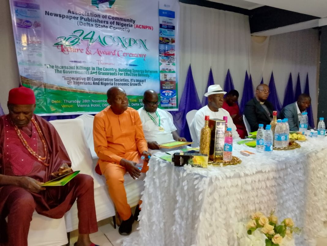 Governor Sheriff Oborevwori of Delta State on Thursday inaugurated the newly elected executives of Association of Community Newspapers Publishers of Nigeria at its 2024 Lectures and Awards Ceremony.