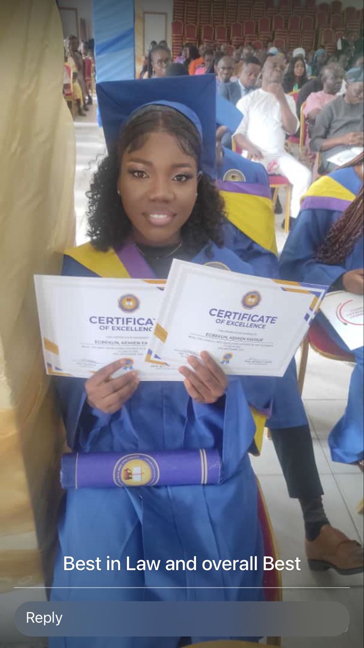A student on the scholarship scheme of the Presidential Amnesty Programme (PAP), Kemien Egbekun, has graduated with a CGPA of 4.77 (first class degree) in Law at the Michael and Cecilia Ibru University (MCIU), Agbara-Otor, Delta State.