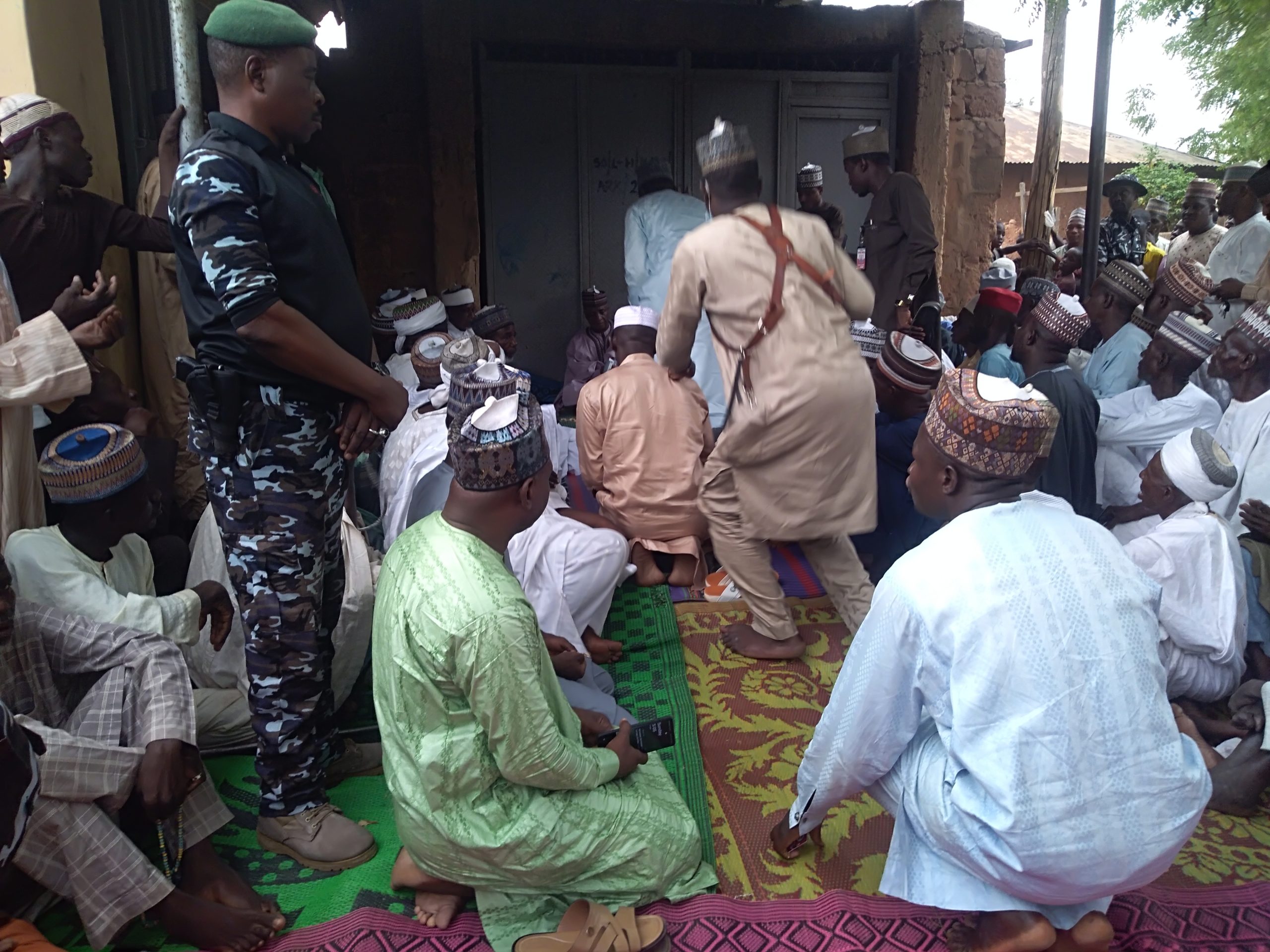 Malam Bashir Gidan Kanawa conducted prayers for the reposed soul of the deceased and presented gift to the families of the chief Imam, Malam Abdullahi Arkilla.