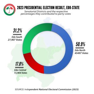 A PDP chieftain in Edo North, Chief Moses Aimiomode, has explained that the 2023 Presidential election in Edo State shows that the PDP won more votes in Edo North under the leadership of the Deputy Governor, Rt. Hon. Comr. Phillip Shaibu more than in previous elections.