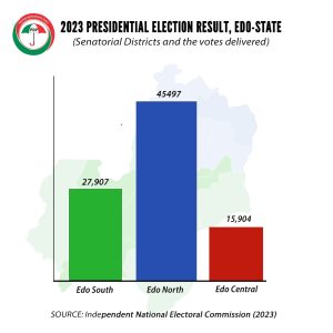 In Edo South, where all the government projects are domiciled and very visible, the PDP lost woefully to other political parties. it was annihilated, leaving all the heavyweights with less than 10% of the total votes cast during the presidential election.