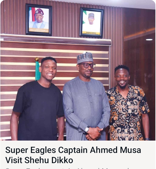 Super Eagles captain Ahmed Musa, along with national team defender Shehu Abdullahi, visited the National Sports Commission (NSC) Chairman, Shehu Dikko, on Monday to express their support for his leadership and vision for advancing Nigerian sports.