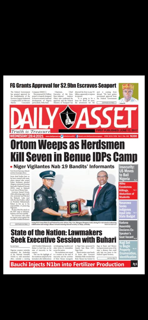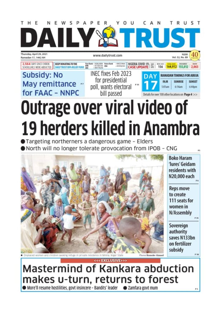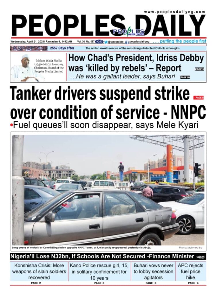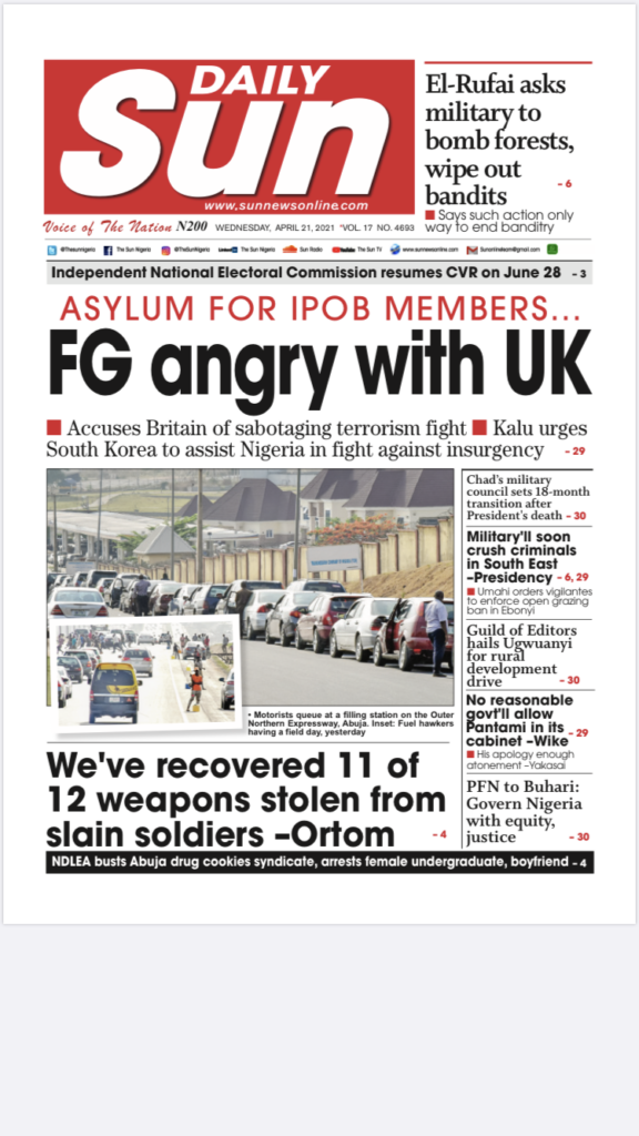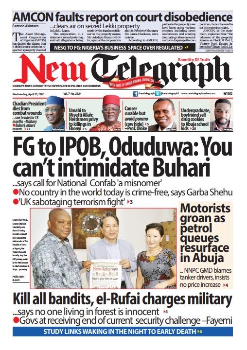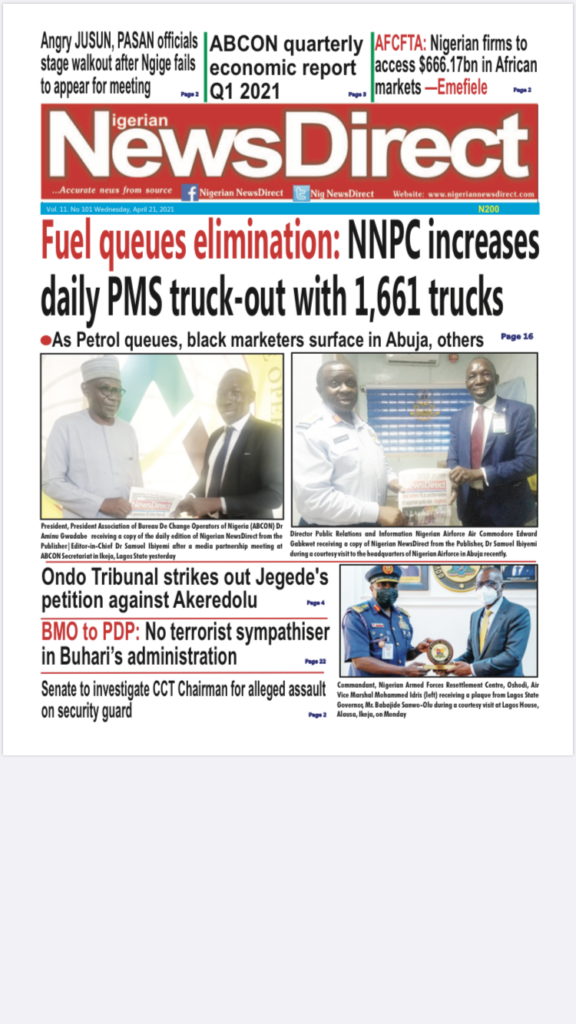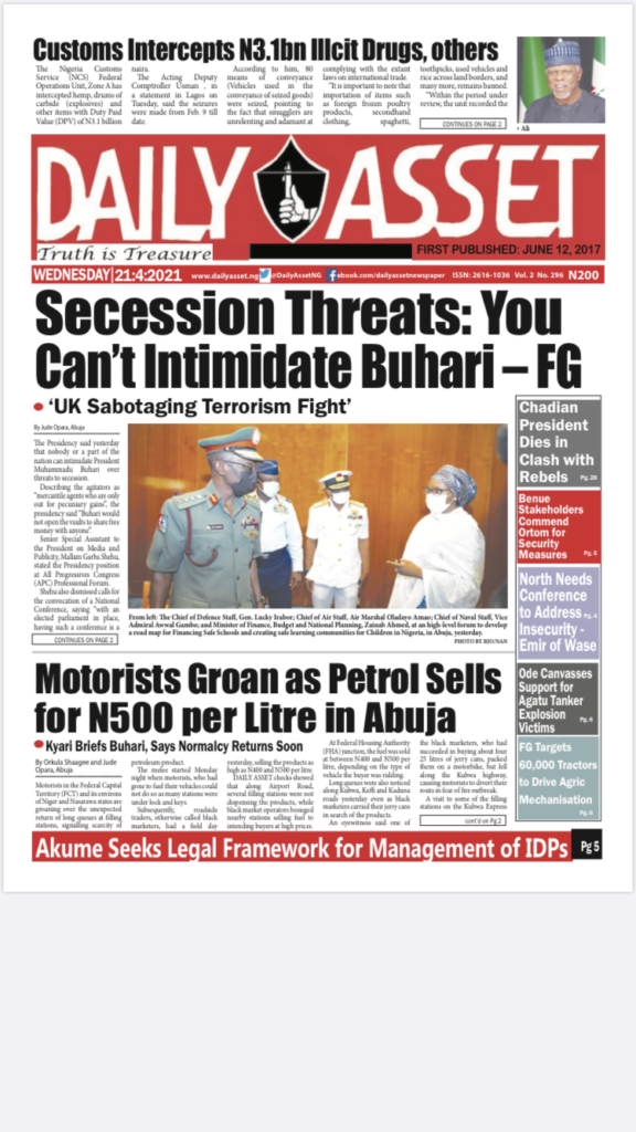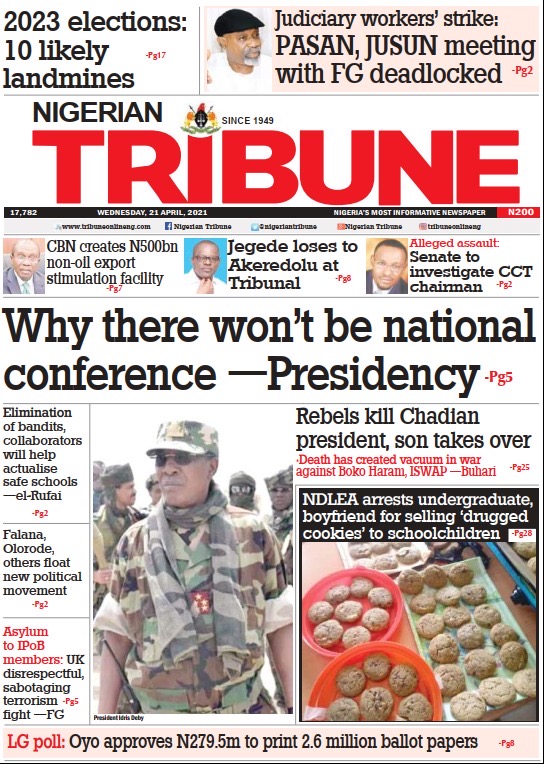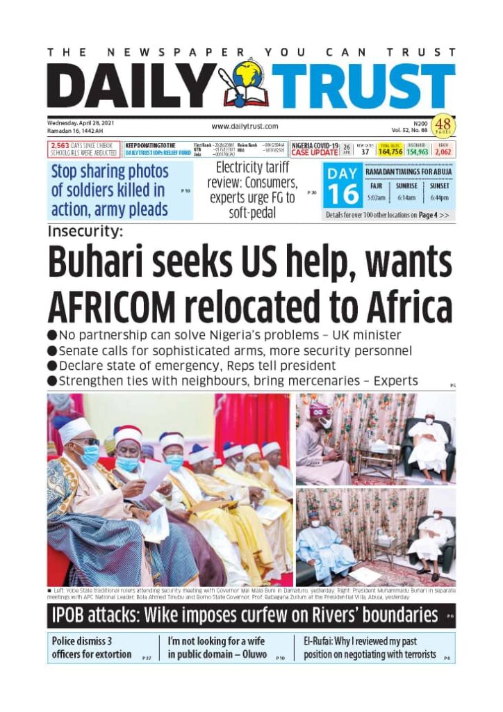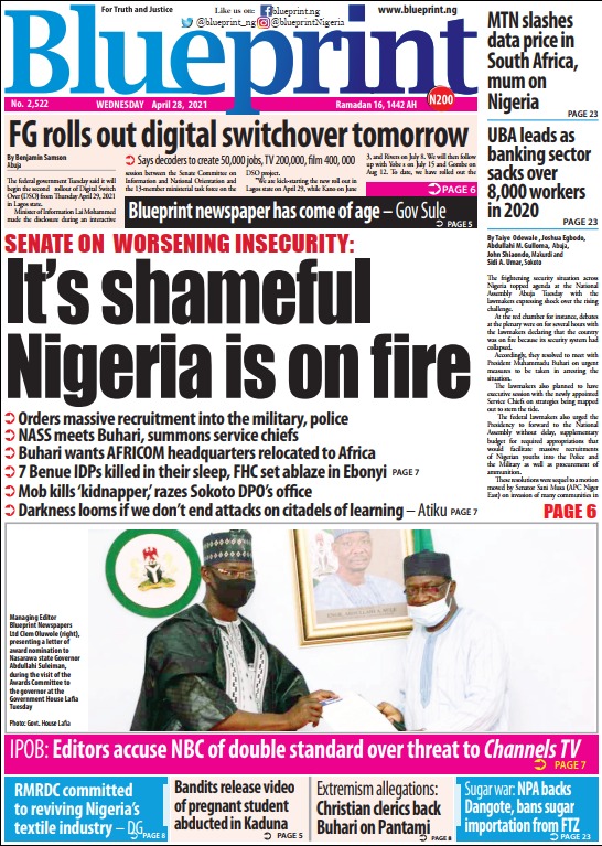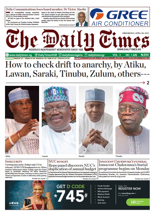 Today’s Major Nigerian Newspapers’ Cover stories-21-April-2021