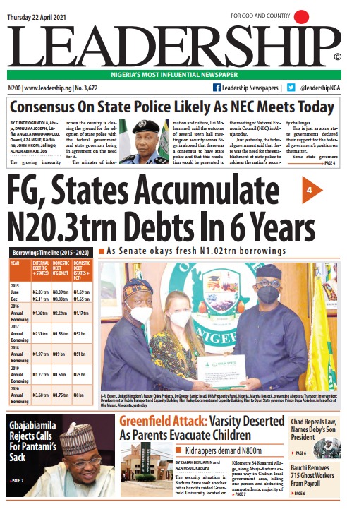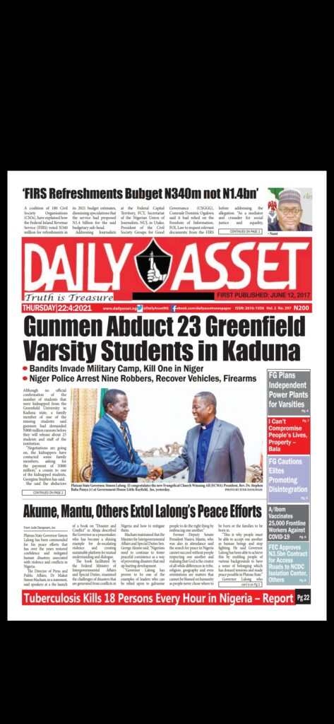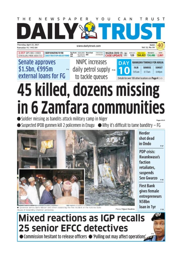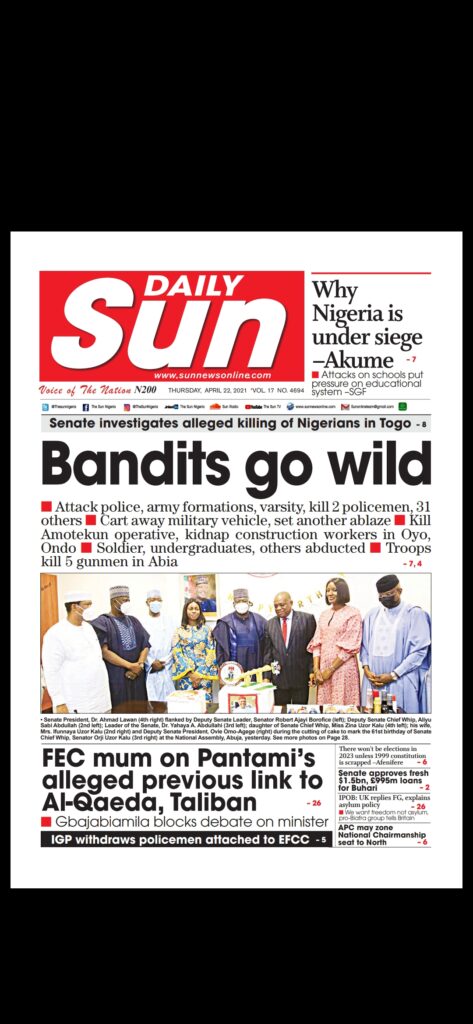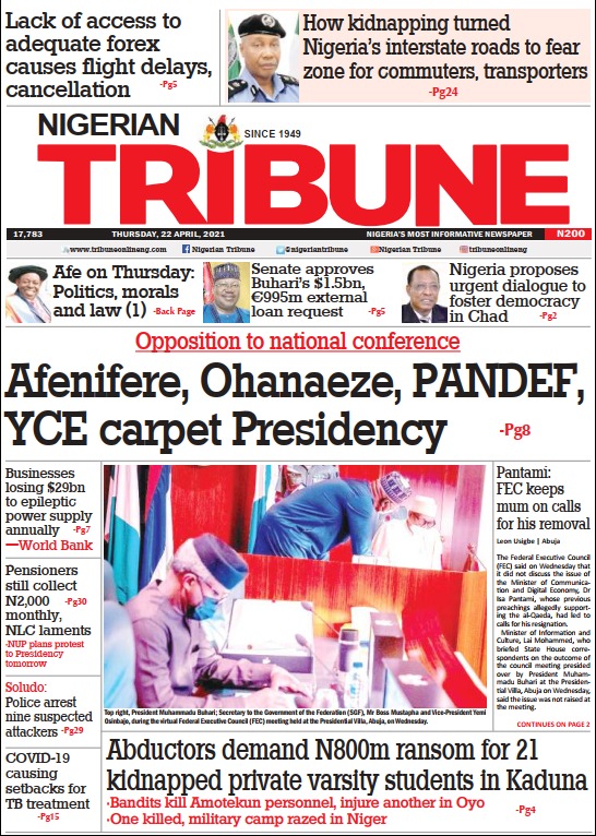 Today’s Major Nigerian Newspapers’ Cover stories-22-April-2021