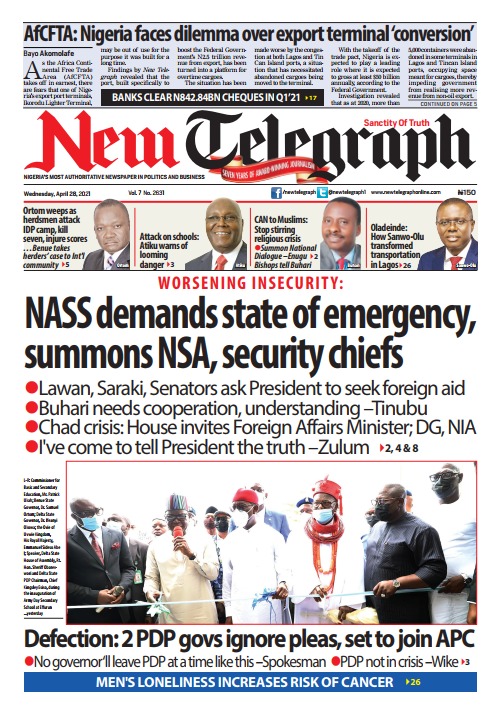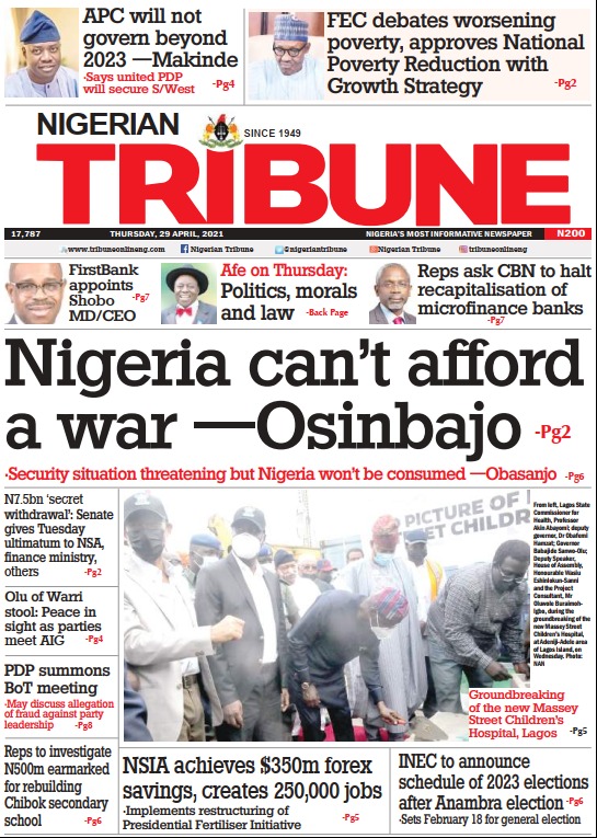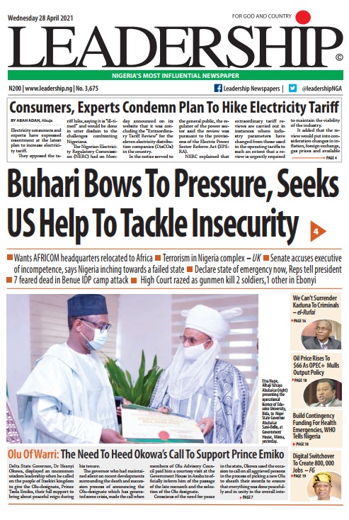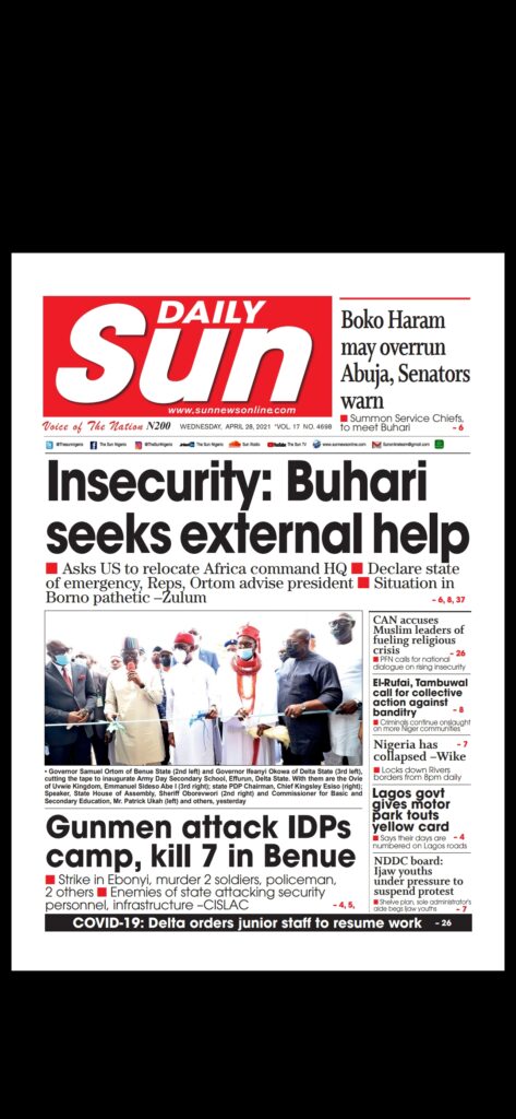 Today’s Major Nigerian Newspapers’ covers stories-28-April-2021