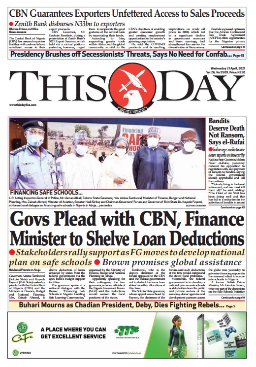 Today’s Major Nigerian Newspapers’ Cover stories-23-April-2021