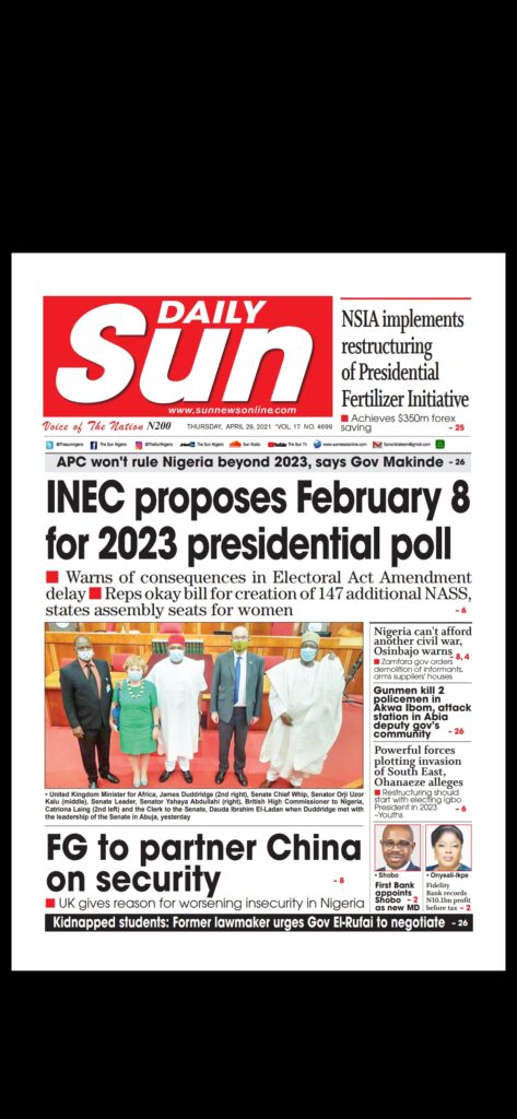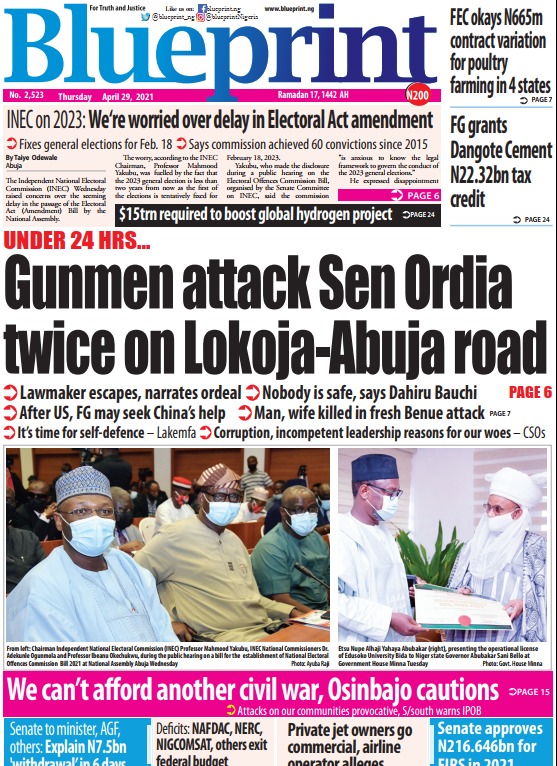 Today’s Major Nigerian Newspapers’ covers stories-29-April-2021