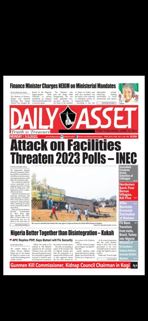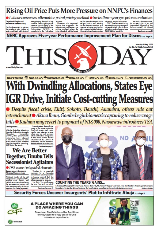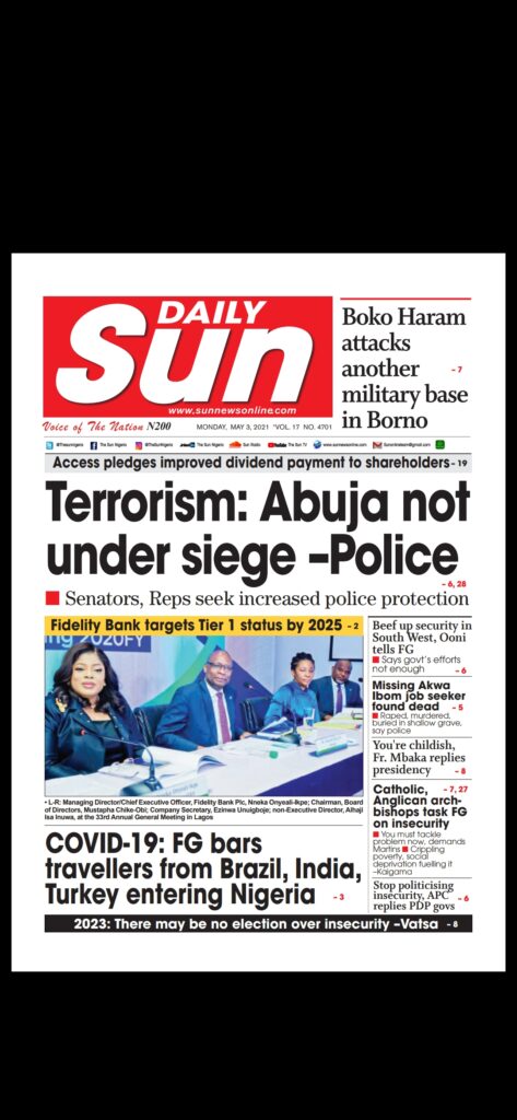 Today’s Major Nigerian Newspapers’ Covers Stories-03-05-2021
