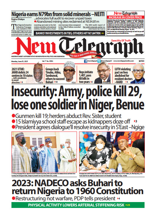 Today’s Major Nigerian Newspapers’ Cover stories-23-06-2021