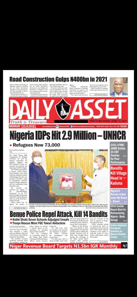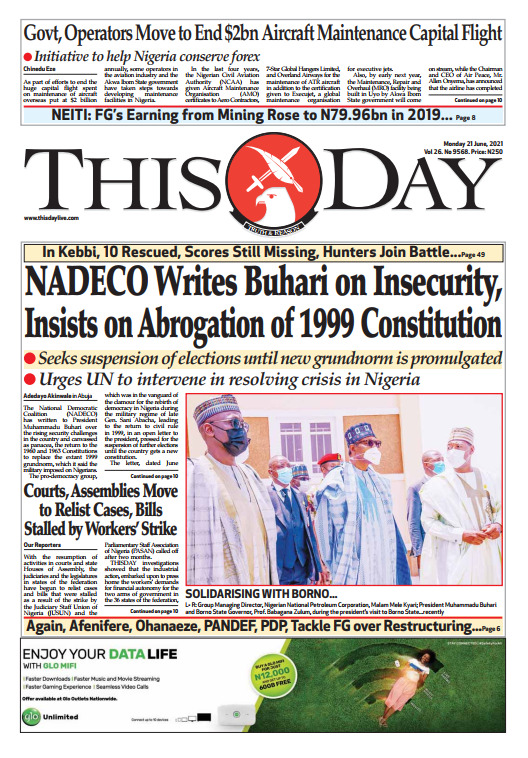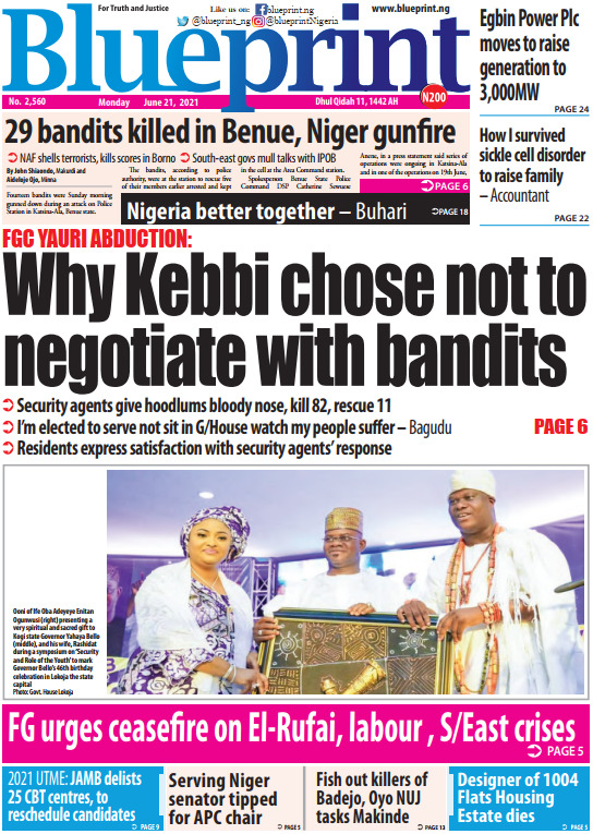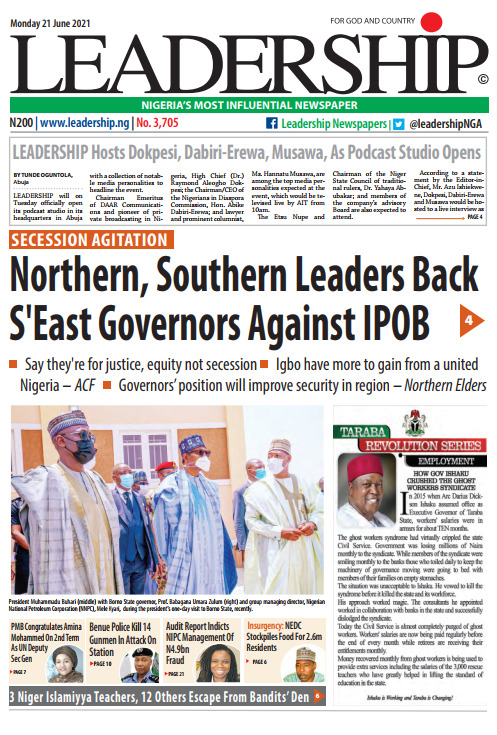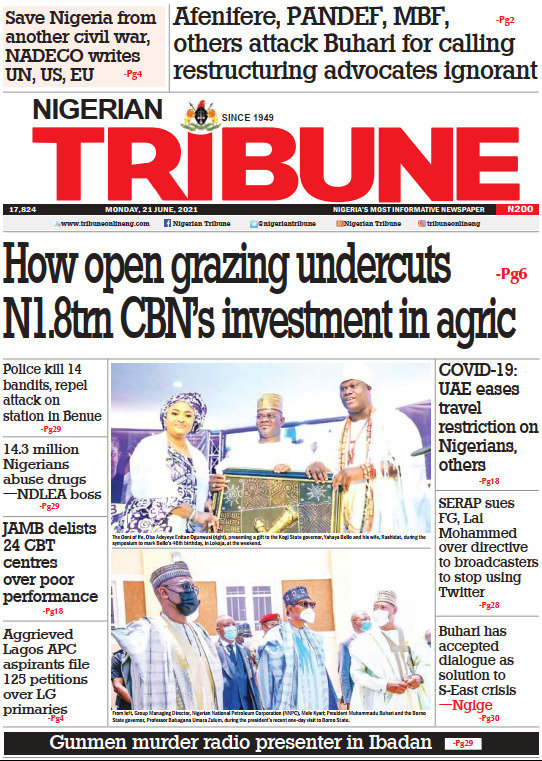 Today’s Major Nigerian Newspapers’ Cover Stories-21-06-2021