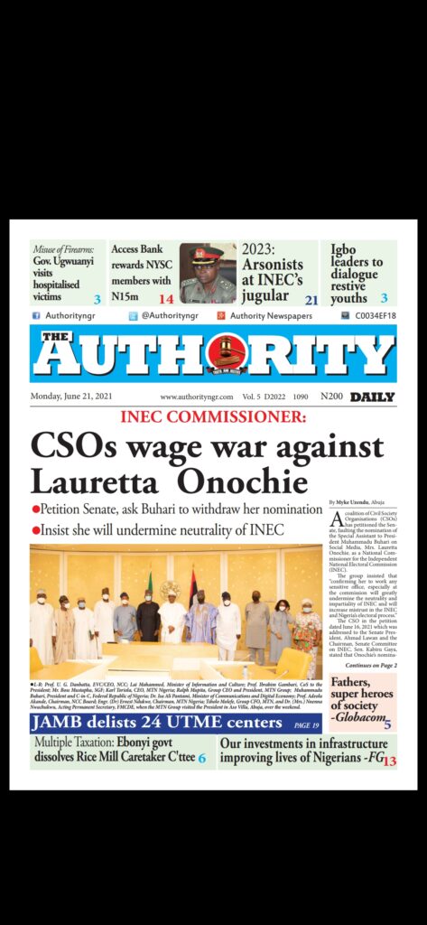 Today’s Major Nigerian Newspapers’ Cover Stories-22-06-2021