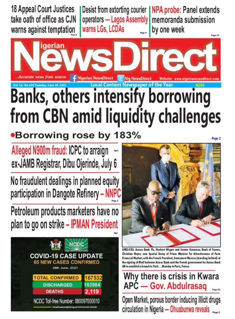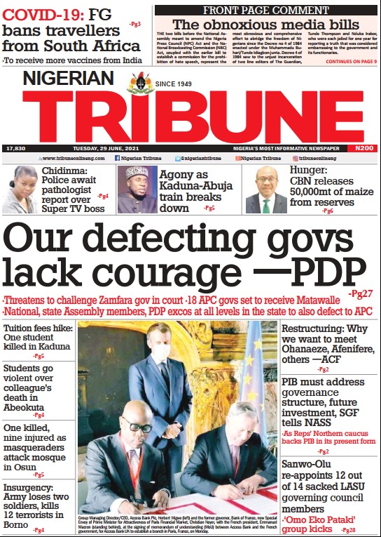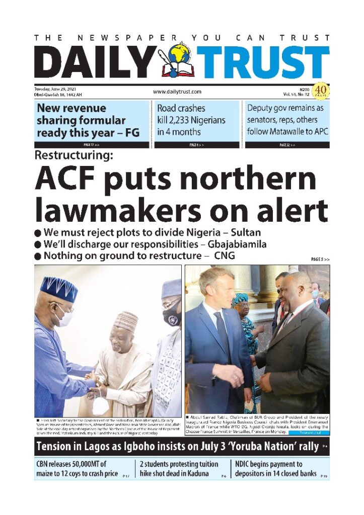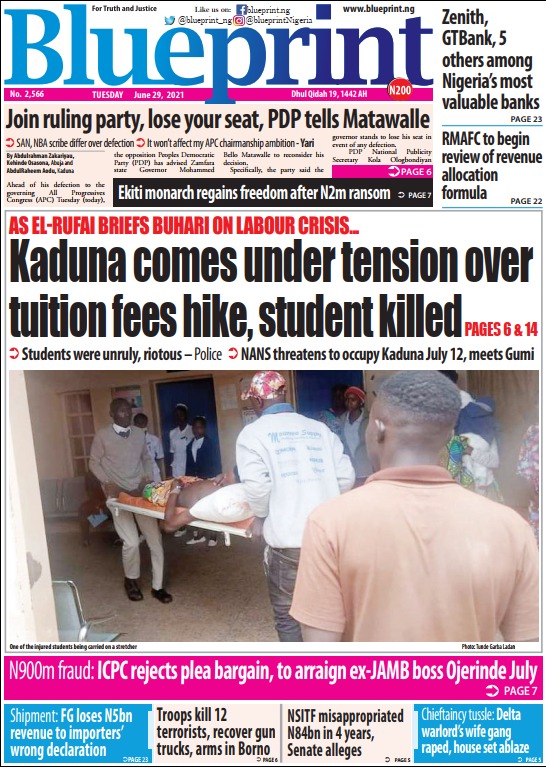 Today’s Major Nigerian Newspapers’ Cover Stories-29-06-2021