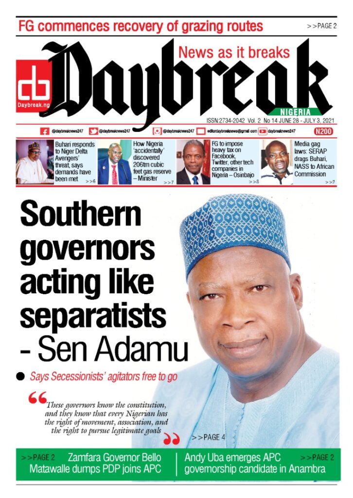 Today’s Major Nigerian Newspapers’ Cover Stories-28-06-2021