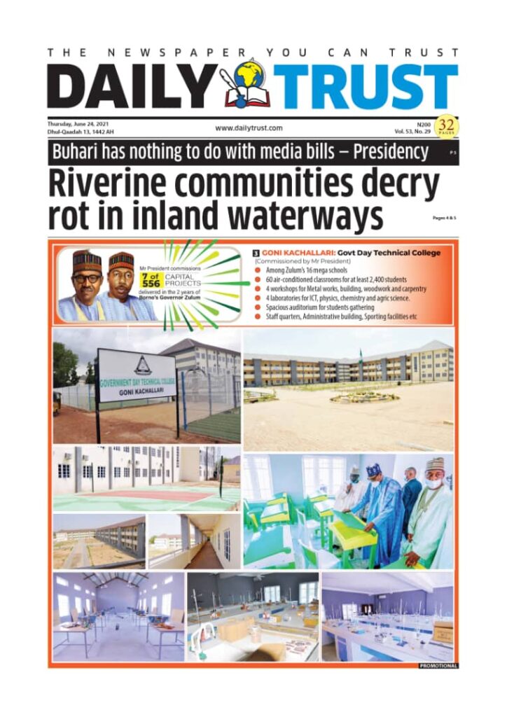 Today’s Major Nigerian Newspapers’ Cover stories-24-06-2021