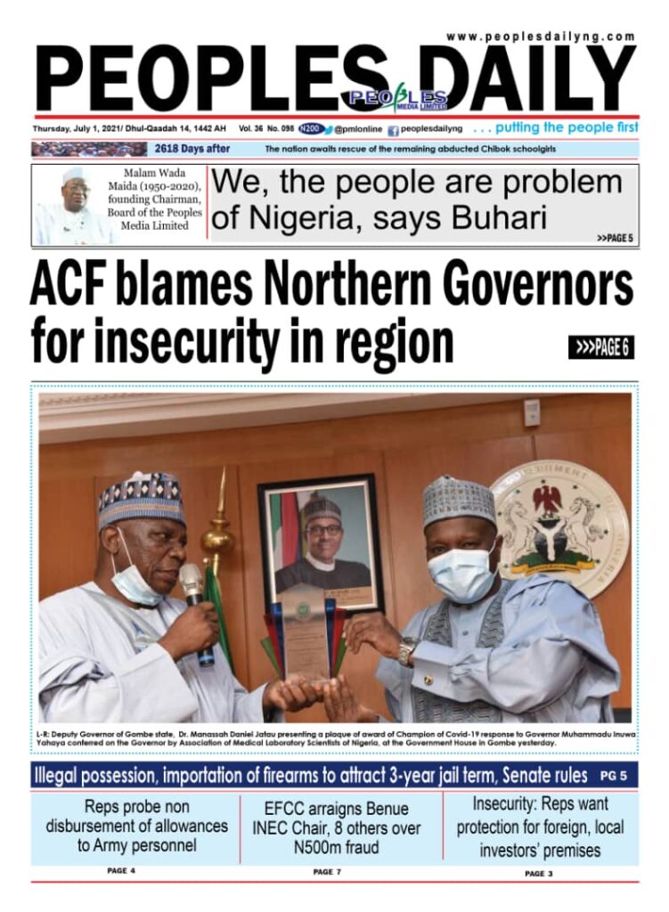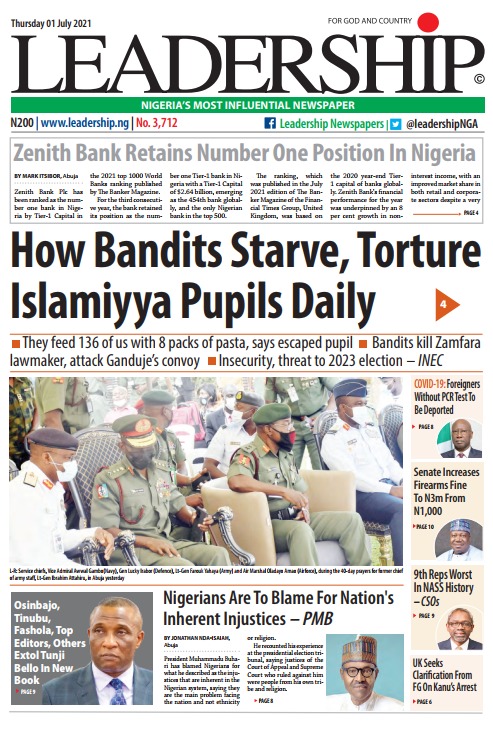 Today’s Major Nigerian Newspapers’ Cover Stories-01-07-2021