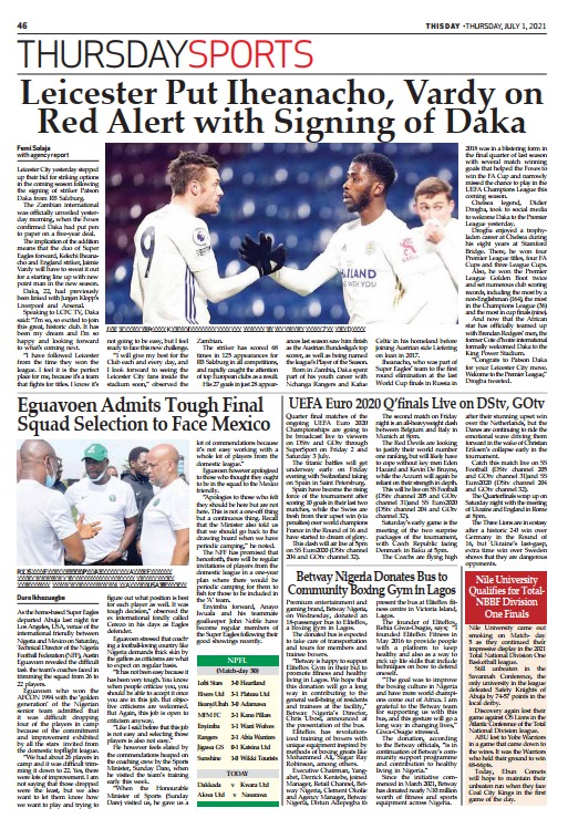 Today’s Major Nigerian Newspapers’ Cover Stories-06-07-2021