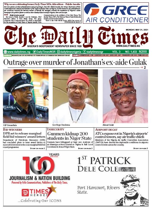 Today’s Major Nigerian Newspapers’ Cover Stories-26-05-2021