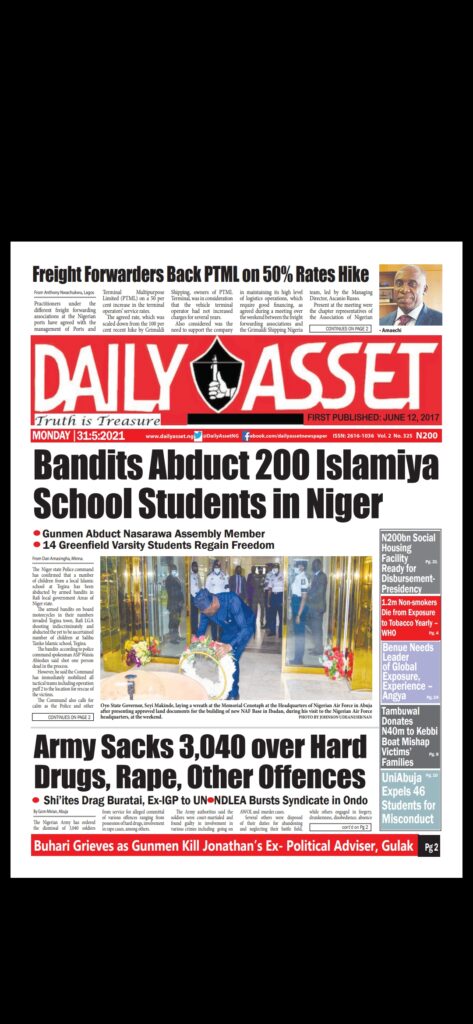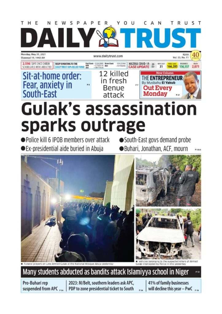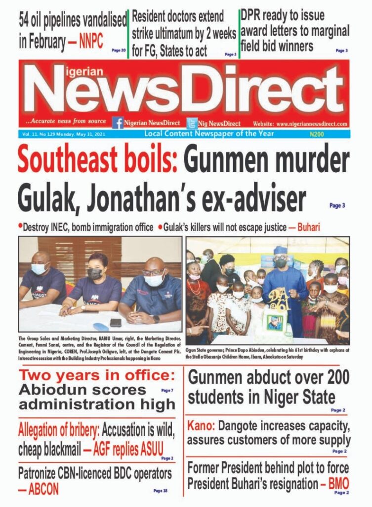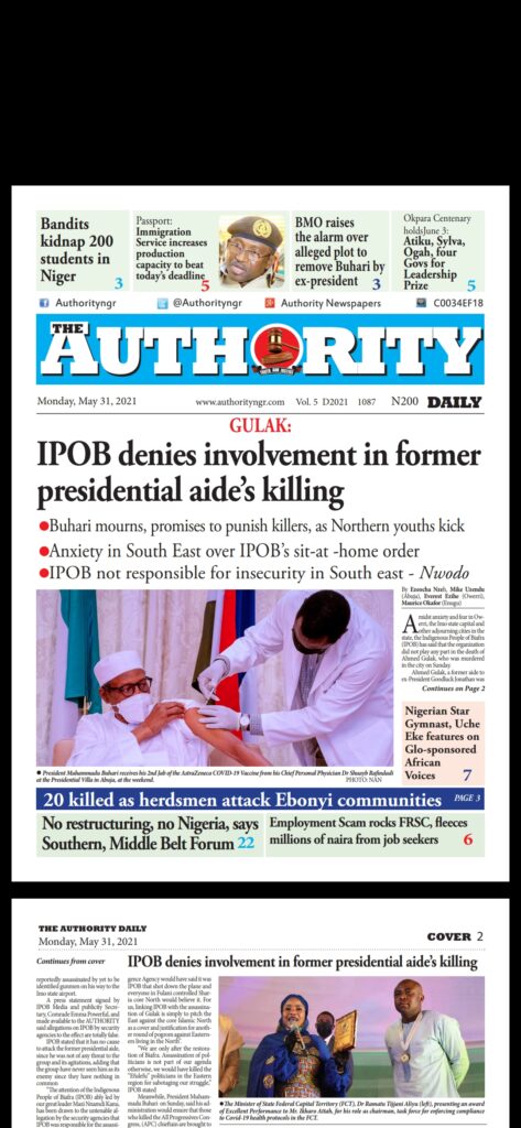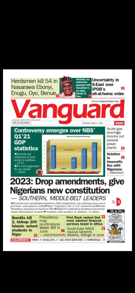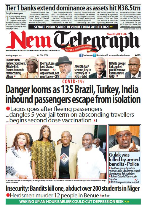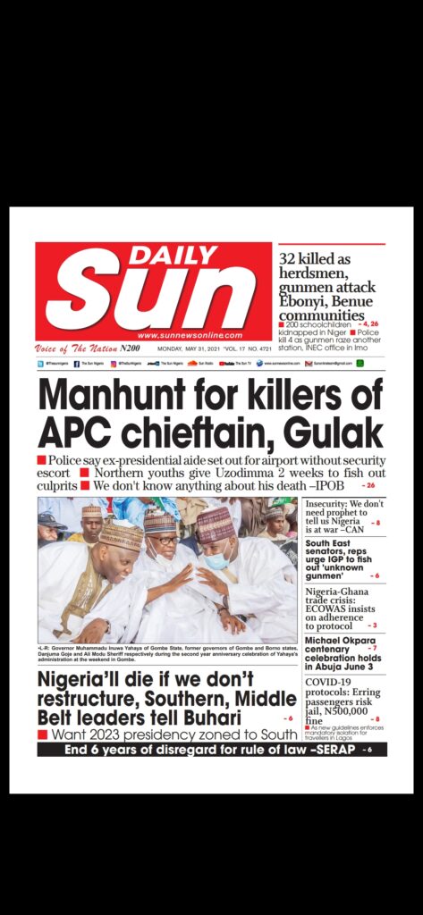 Today’s Major Nigerian Newspapers’ Cover Stories-31-05-2021
