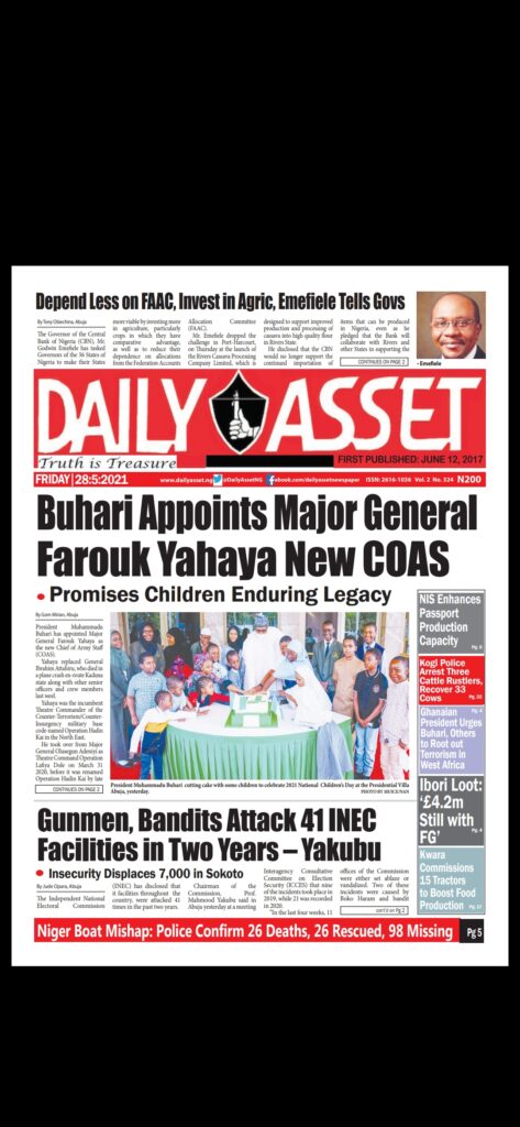 Today’s Major Nigerian Newspapers’ Cover Stories-27-05-2021