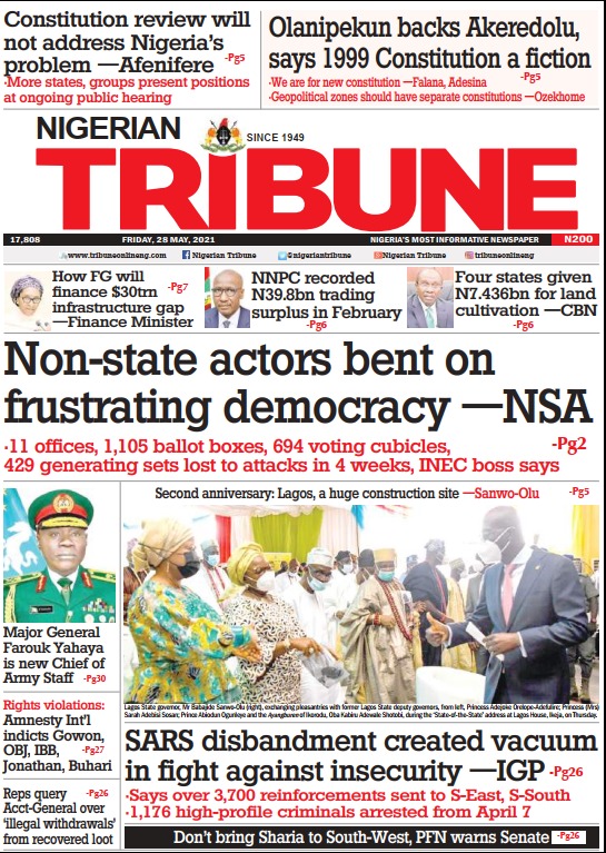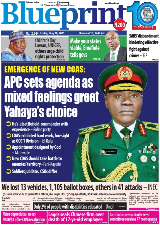 Today’s Major Nigerian Newspapers’ Cover Stories-28-05-2021
