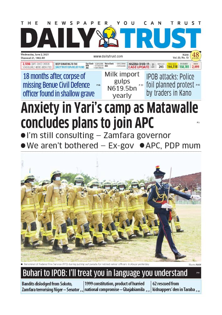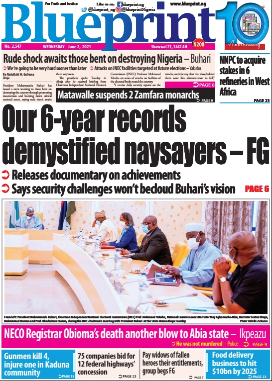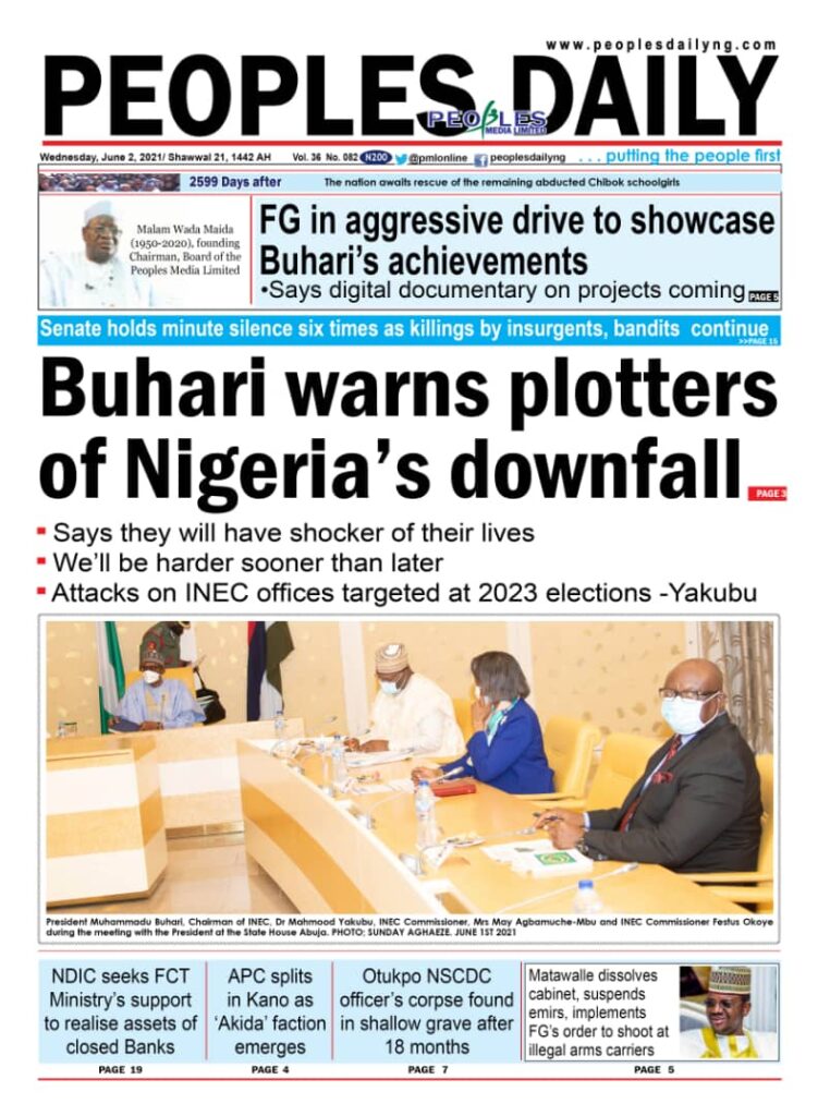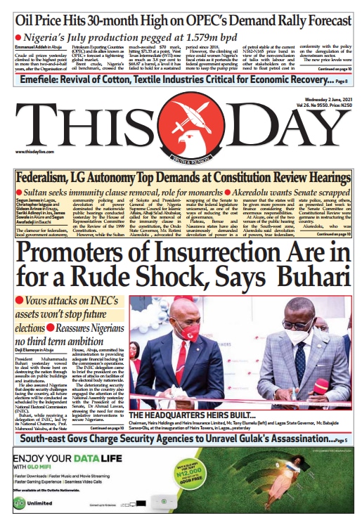 Today’s Major Nigerian Newspapers’ Cover Stories-02-06-2021