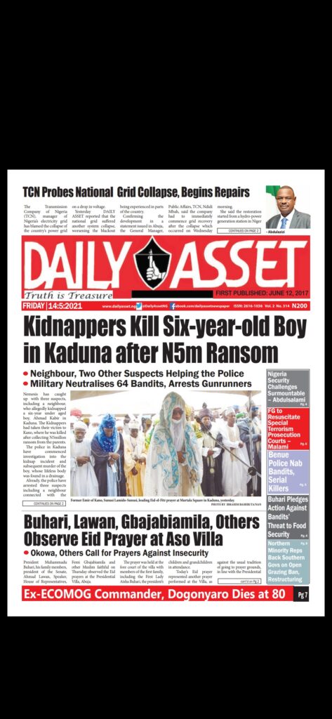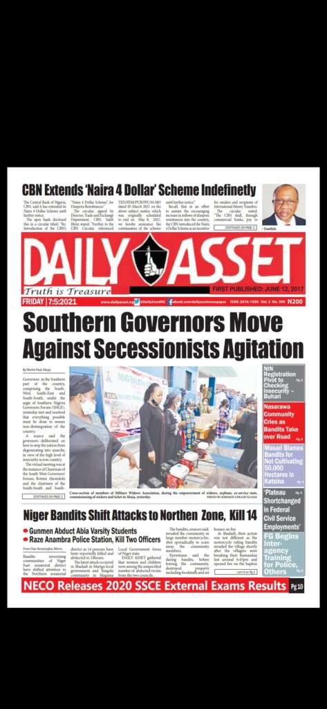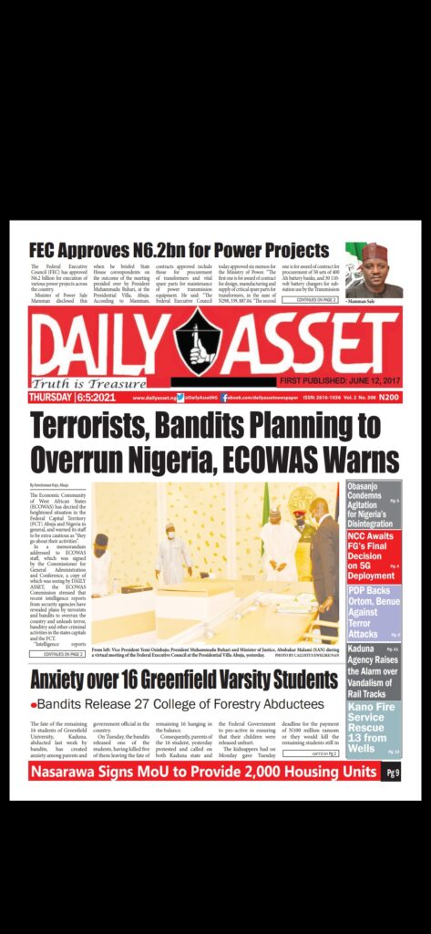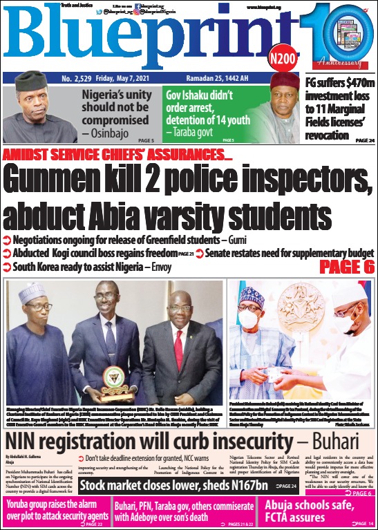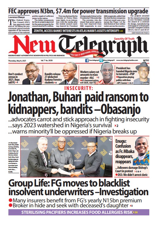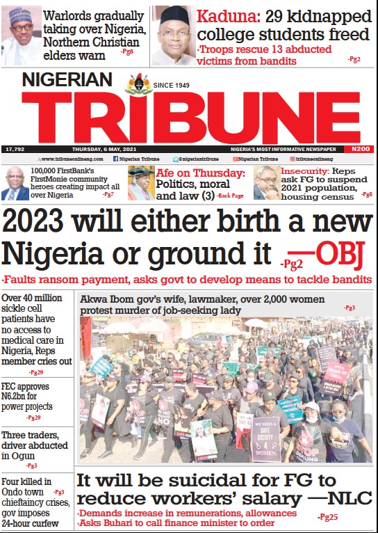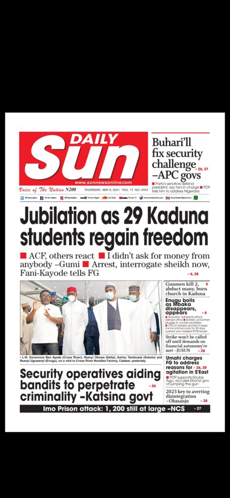 Today’s Major Nigerian Newspapers’ Cover Stories-06-05-2021