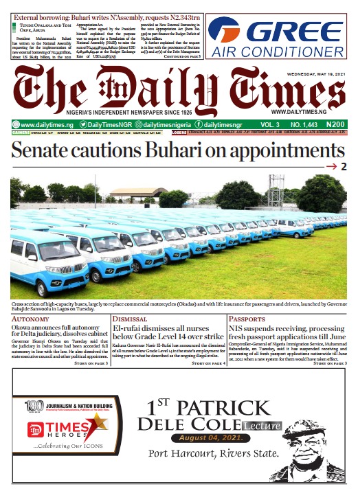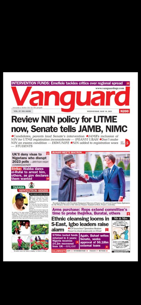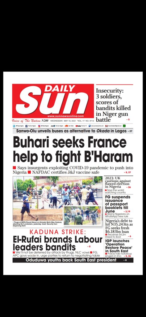 Today’s Major Nigerian Newspapers’ Covers Stories-19-05-2021