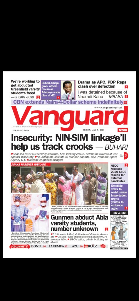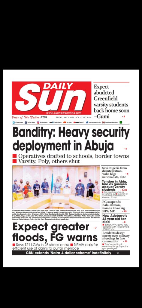 Today’s Major Nigerian Newspapers’ Cover Stories-07-05-2021