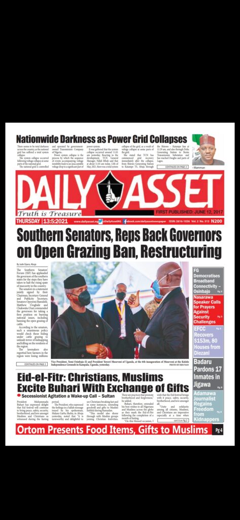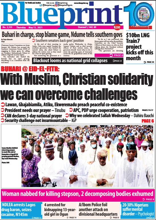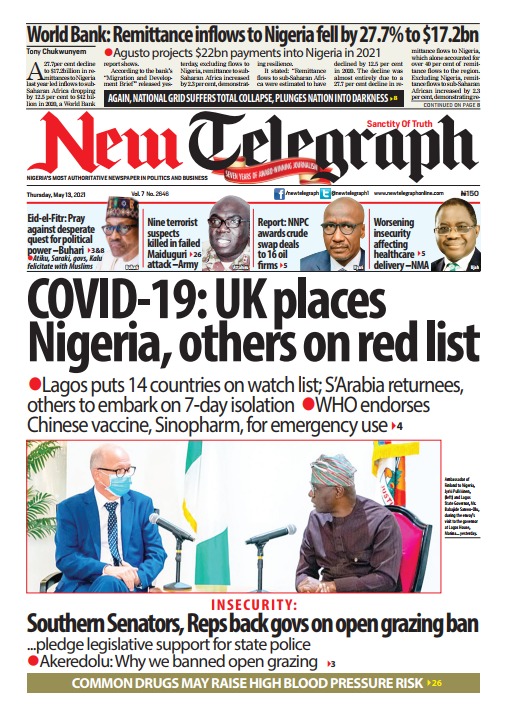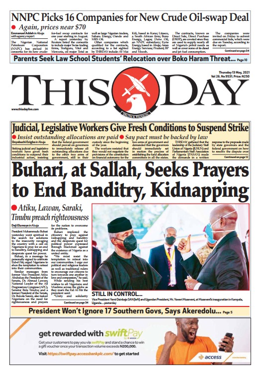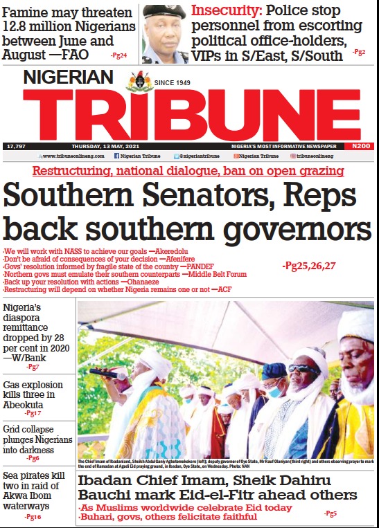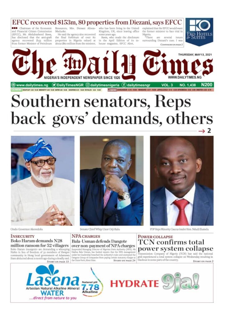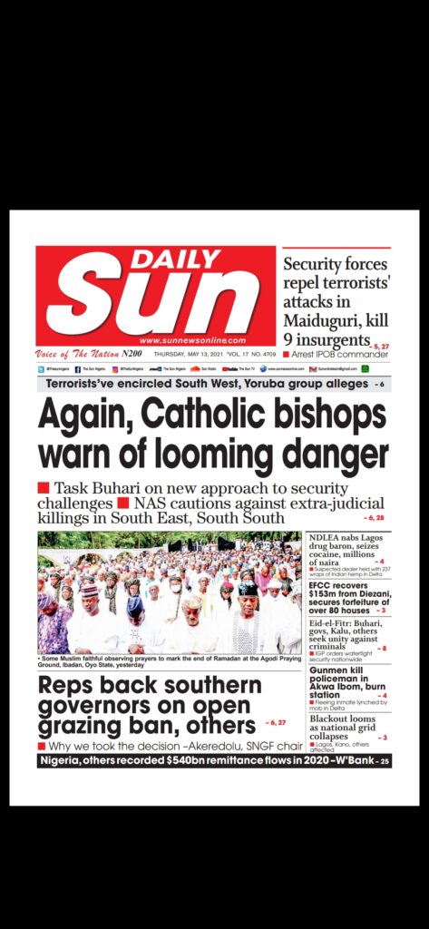 Today’s Major Nigerian Newspapers’ Cover Stories-13-05-2021