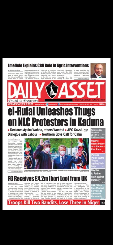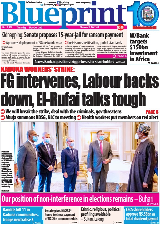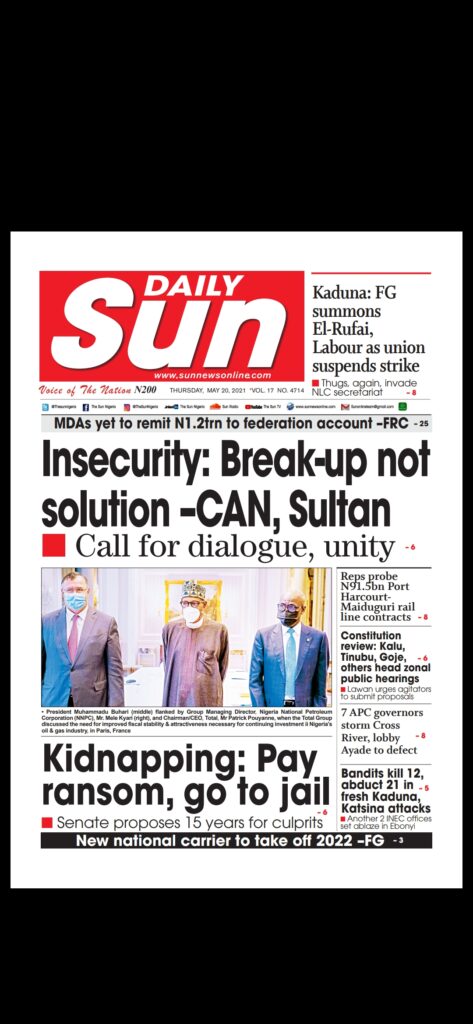Today’s Major Nigerian Newspapers’ Front Pages-17-05-2021