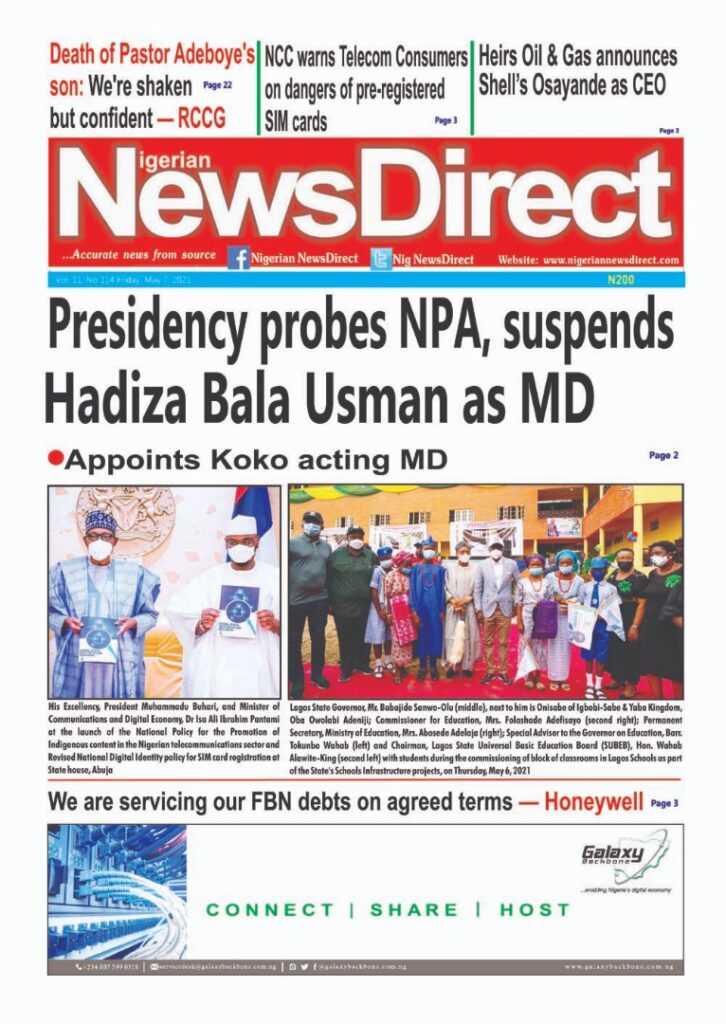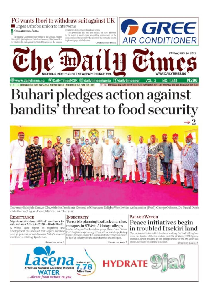 Today’s Major Nigerian Newspaper’s Cover Stories-14-05-2021