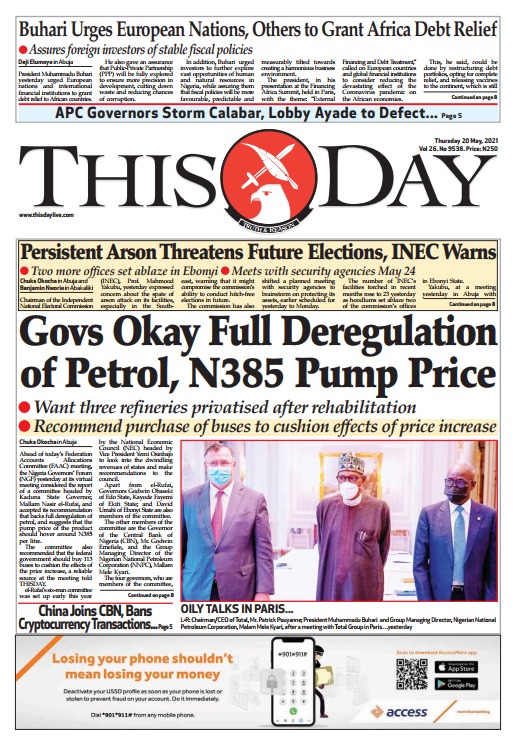 Today’s Major Nigerian Newspapers Cover Stories-20-05-2021