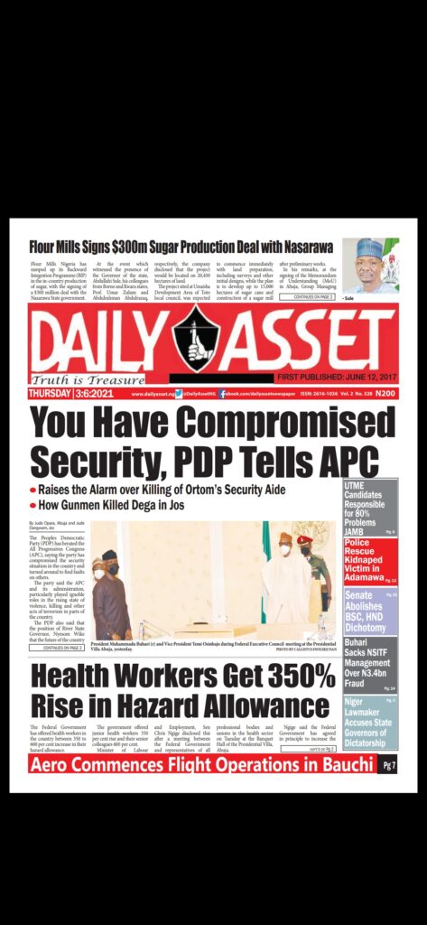 Today’s Major Nigerian Newspapers’ Cover Stories-03-06-2021