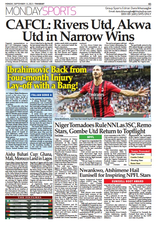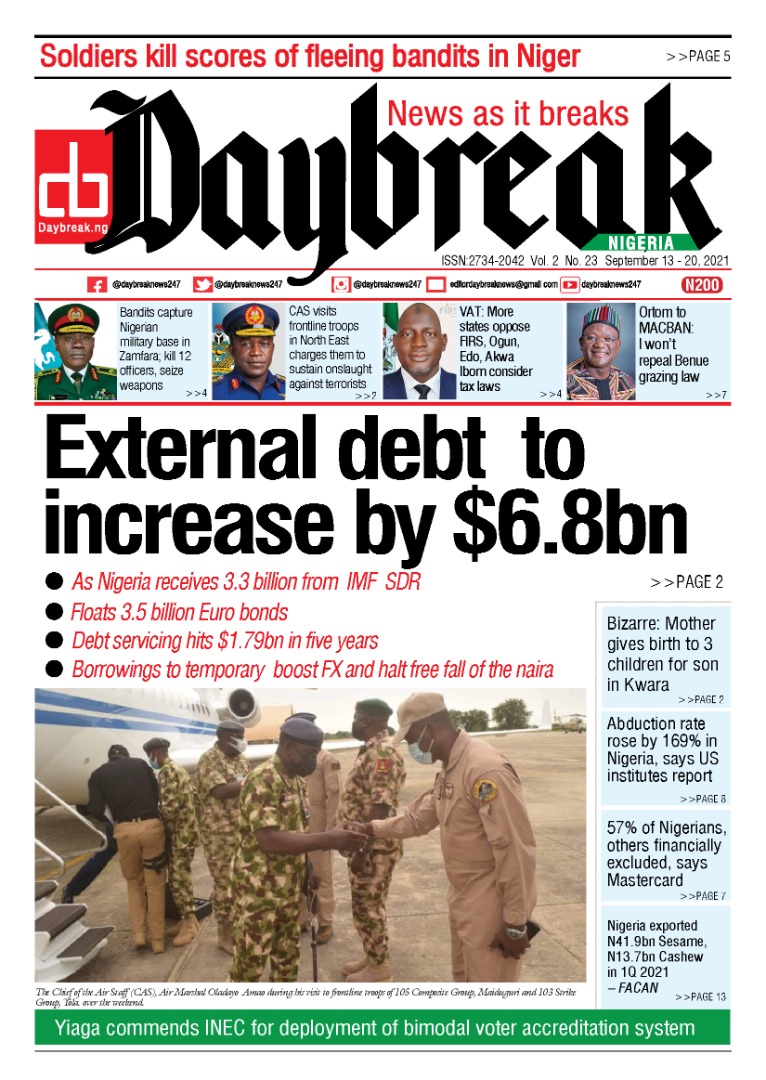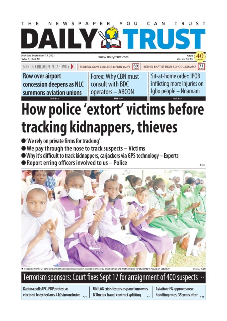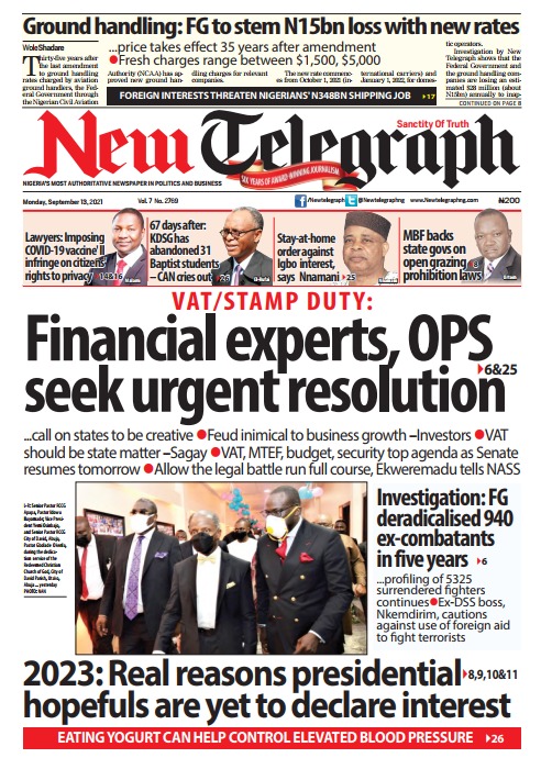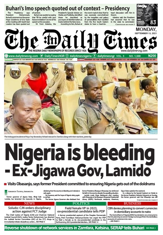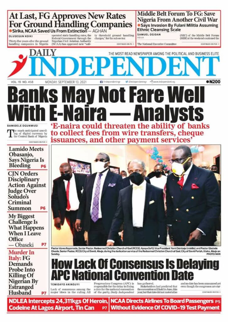 Today’s Major Nigerian Newspaper’s Cover Stories-13-09-2021
