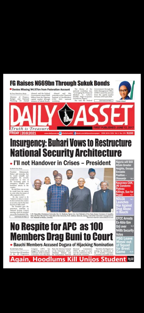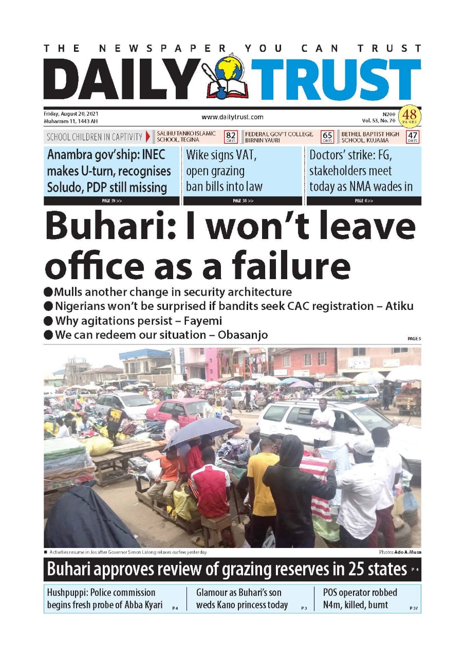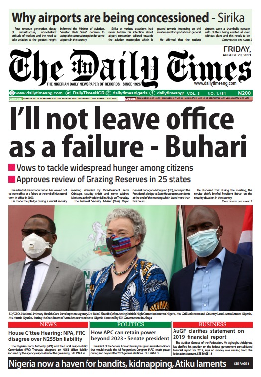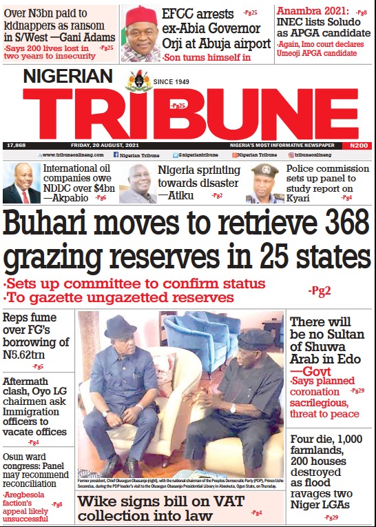Today’s Major Nigerian Newspapers’ Cover Stories-20-08-2021