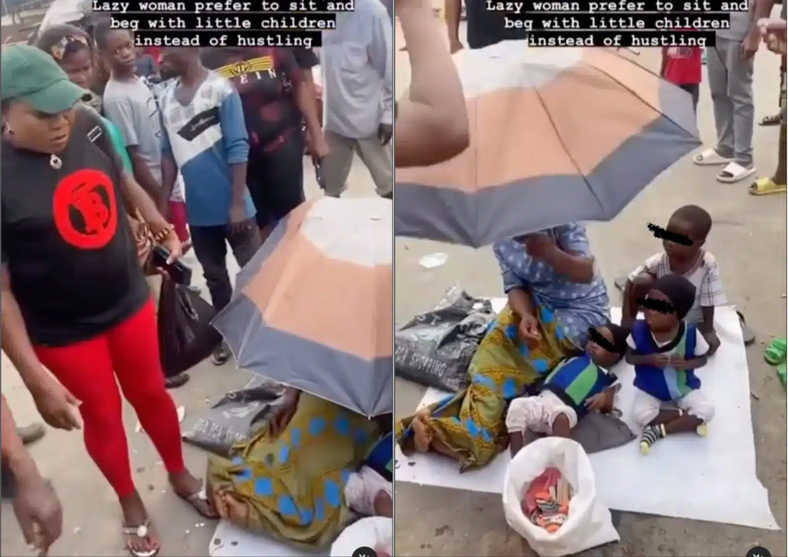 A recently surfaced video captures an unnamed woman confronting a female beggar who was employing her children in a begging operation. The video has quickly gained traction on social media.