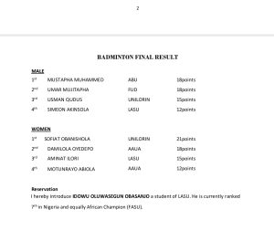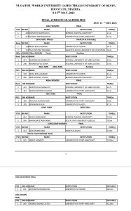 The final list of successful athletes was exclusively made available to Daybreak Nigeria by the Acting Secretary General of Nigeria Universities Games Association, NUGA, Chiediebere Ezeani.