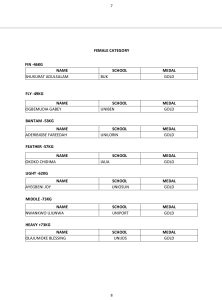 The final list which was signed by Prof M.G. YAKASAI, CHAIRMAN TECHNICAL NUGA has a total of 85 athletes that would participate in the games. The breakdown is as follows: